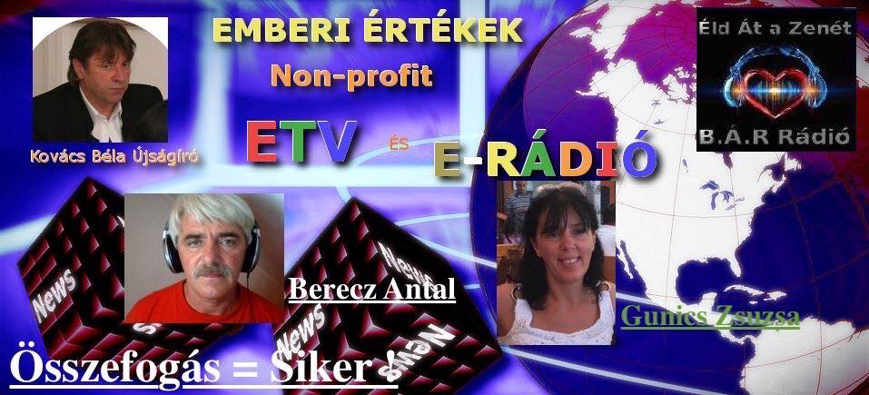 FACEBOOK ETV-én és E-RÁDIÓ Emberi Értékek Radióban Várjuk szeretettel !Kovács Béla újságíró-ETV.főszerkesztő valamint Gunics Zsuzsa E-Rádió főszerkesztő-műsorvezető.